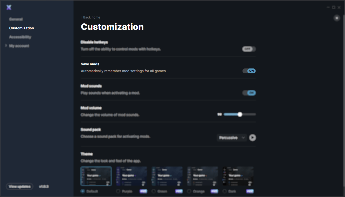 Cuando Guardar mods esté activado, todos tus mods se guardarán y se aplicarán al iniciar cada juego. Si quieres dejar de guardar tus mods para un juego en particular, simplemente desactiva Guardar mods, ubicado junto al botón Jugar del juego. Esto requerirá que reconfigures todos los mods cada vez que inicies el juego.